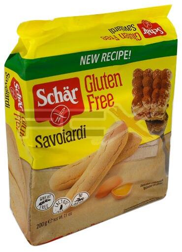 Gluténmentes babapiskóta. Kifejezetten gluténérzékenyek számára készült. Összetétel:, Friss tojás* 38%, Cukor, Kukorica keményítő, Rizsliszt, Sűrítőanyag: guar gumi, Aroma,  , *Alternatív tartásban termelt tojás. Allergének:, tojásÁtlagos tápértékek 100 g-ban:, Energia 1604 kJ / 380 kcal , Zsír 7,0 g ,  - amelyből telített zsírsavak 2,2 g , Szénhidrát 70 g ,  - amelyből cukrok 32 g , Rost 1,1 g , Fehérje 8,6 g , Só 0,20 g Tárolás:, Száraz, hűvös helyen tárolandó. Gyártó:, Dr. Schär AG / SPAForrás: gyártó/forgalmazó 2019 február